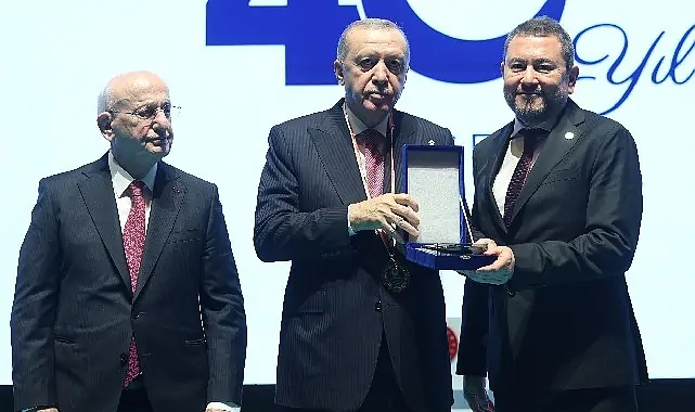Gecenin öne çıkan anlarından biri, vakıf faaliyetlerine sunduğu katkılar dolayısıyla İzmirli iş insanı Nazım Torbaoğlu’na takdim edilen plaket oldu. Plaketin Cumhurbaşkanı Erdoğan tarafından bizzat verilmesi, törene ayrı bir anlam kattı.