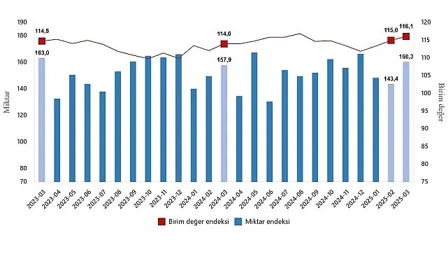 İhracat birim değer ve miktar endeksleri, Mart 2025
