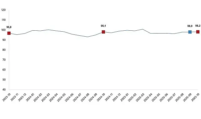 Ekonomik güven endeksi Eylül ayında 98,0 iken, Ekim ayında %0,3 oranında artarak 98,2 değerini aldı.
