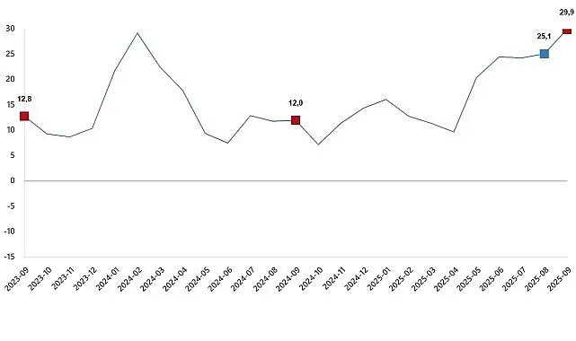 İnşaatın alt sektörleri (2021=100 referans yıllı) incelendiğinde, 2025 yılı Eylül ayında bina inşaatı sektörü endeksi bir önceki yılın aynı ayına göre %31,2 arttı, bina dışı yapıların inşaatı sektörü endeksi %23,3 arttı ve özel inşaat faaliyetleri sektörü endeksi %30,1 arttı.