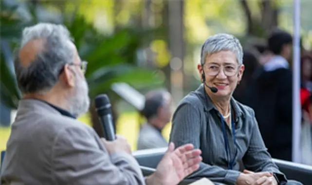 Konuşmaların ardından ödül kazanan lise öğrencilerine Başkan Tugay, şair Ergülen ve yazar Tunç tarafından ödülleri takdim edildi. Törenin ardından Ergülen’in moderatörlüğünde Tunç ile söyleşi düzenlendi. “Bir Deliler Evinin Yalan Yanlış Anlatılan Kısa Tarihi” adlı kitabı üzerine konuşan Ayfer Tunç, Ergüven’in “Kitabın basımının üzerinden 16 yıl geçmiş. Türkiye’nin tarihi, geleceği için 16 yıl çok önemli. Bu romana ek yazmak ister misiniz?” sorusuna şu yanıtı verdi: “Buna çok eğlenceli bir cevap vermek isterdim ama ne yazık ki veremiyorum. Bir Deliler Evinin Yalan Yanlış Anlatılan Kısa Tarihi’nin hikayelerinin bir kısmı da tebessüm ettirmeye yönelik, yer yer dramatik ve yer yer mizahla ifade edilen bir Türkiye panoramasıydı. Ancak ben artık gelecek bir şey bulamıyorum. Toplumca bir depresyonun içindeyiz. Buna ‘distimi’ (kronik depresyon) deniyormuş. Hayata devam ediyoruz, festivaller yapıyoruz, kitaplar okuyoruz, yemekler yiyoruz, düğünler, şenlikler oluyor ama içimizde derinde bir yerde bitmeyen bir acı var. Bu dinmeyen acının adı distimi. Bu da beni edebiyatta çok etkiliyor ve bunu edebiyata dönüştürmekte güçlük çekiyorum” dedi.