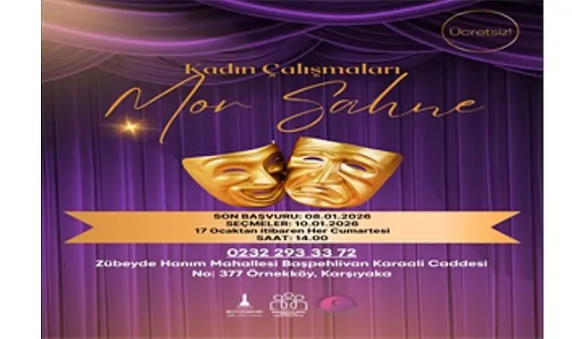 İzmir Büyükşehir Belediyesi Kadın Çalışmaları Şube Müdürlüğü tarafından yürütülen Mor Sahne tiyatro çalışmaları için başvurular başladı. Kadınların sahne aracılığıyla kendini ifade etmesini amaçlayan ücretsiz çalışma, tiyatroya ilgi duyan ve sahnede var olmak isteyen tüm kadınları bekliyor.