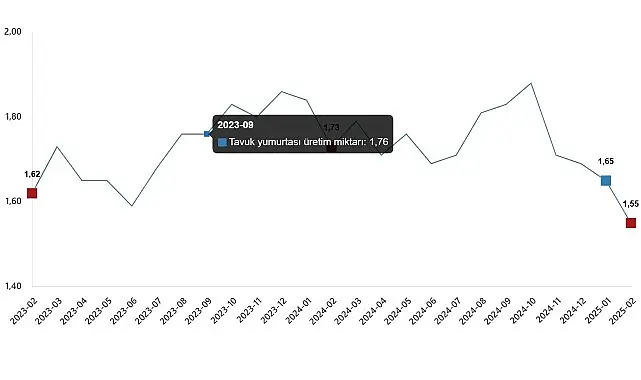 Tavuk yumurtası üretim miktarı, Şubat 2025
