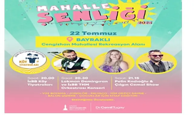 İzmirli yurttaşlar, İzmir Büyükşehir Belediyesi Kültür ve Sosyal İşler Dairesi Başkanlığı organizasyonunda düzenlenecek Mahalle Şenliği ile eğlenceli etkinliklerle buluşacak. Mahalle Şenliği, 22 Temmuz’da Bayraklı Cengizhan Mahallesi Rekreasyon Alanı, 29 Temmuz’da Beydağ Cumhuriyet Mahallesi 2 Eylül Kurtuluş Parkı, 5 Ağustos’ta Bergama Cumhuriyet Meydanı, 12 Ağustos’ta Ödemiş Kültürpark Zafer Mahallesi, 19 Ağustos’ta Kemalpaşa Rekreasyon Alanı ve 26 Ağustos’ta Aliağa Siteler Mahallesi Şehit Oğuz Özgür Çevik Parkı’nda gerçekleştirilecek.