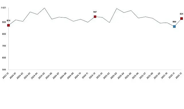 Bir önceki ay 863 bin 651 ton olan ticari süt işletmelerince toplanan inek sütü miktarı Aralık ayında %7,8 oranında artarak 930 bin 898 ton oldu.