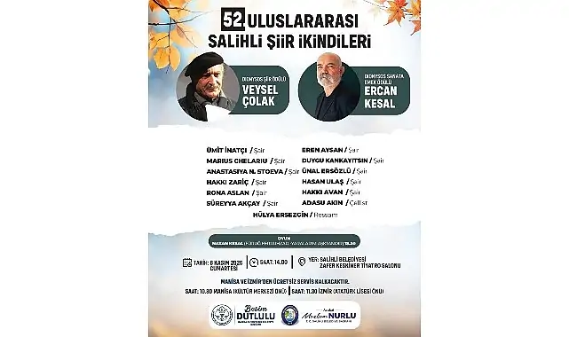 Belediye Başkanı Avukat Mazlum Nurlu yaptığı açıklamada, “Şiir İkindileri, Salihli’nin kültürel yaşamına katkı sağlamanın (veya ışık tutmanın) yanı sıra, edebiyat dünyasına yeni sesler kazandıran ve şiiri yaygınlaştıran önemli bir etkinlik haline gelmiştir. Bu yıl da 52. buluşmamızda, hem yerel hem de ulusal şairlerle şiirseverleri bir araya getireceğiz” dedi.