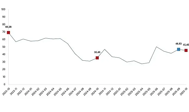 Tarım-ÜFE’de (2020=100), 2025 yılı Ekim ayında bir önceki aya göre %4,00 artış, bir önceki yılın Aralık ayına göre %34,06 artış, bir önceki yılın aynı ayına göre %45,40 artış ve on iki aylık ortalamalara göre %38,83 artış gerçekleşti.