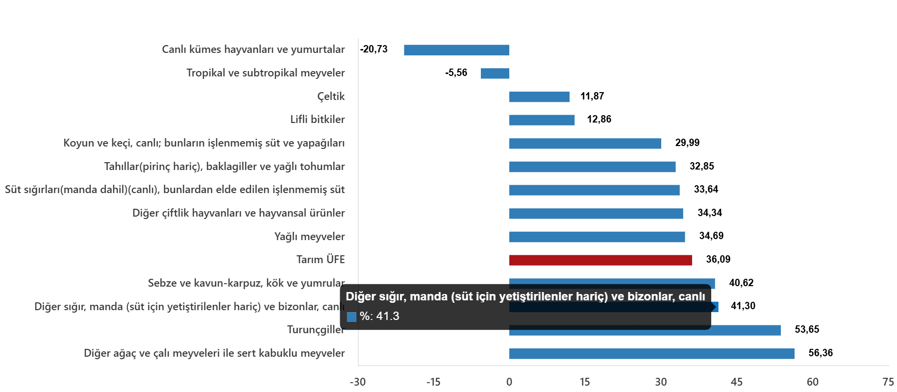 Tarım ürünleri üretici fiyat endeksi (Tarım-ÜFE) yıllık %36,09 arttı, aylık %3,85 arttı