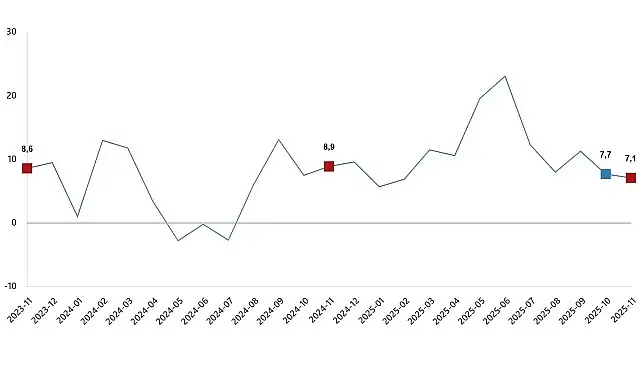 Ticaret satış hacmi yıllık değişim oranı (%), Kasım 2025