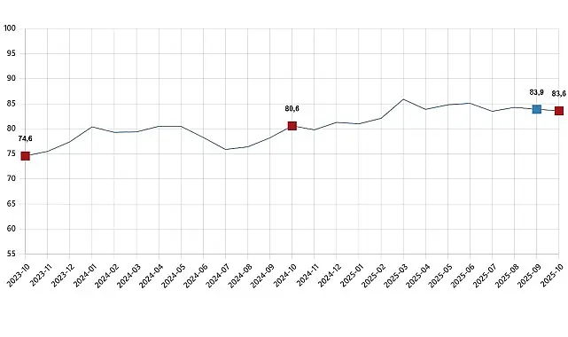 Türkiye İstatistik Kurumu ve Türkiye Cumhuriyet Merkez Bankası işbirliği ile yürütülen tüketici eğilim anketi sonuçlarından hesaplanan tüketici güven endeksi, Eylül ayında 83,9 iken Ekim ayında %0,3 oranında azalarak 83,6 oldu.